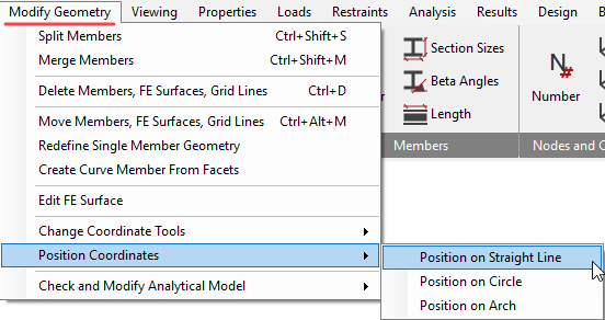 Caution! – care must be taken when using these tools to manipulate geometry, since a change in nodal ordinates might affect the straightness of a physical member or integrity of a curved member. Where a physical member is no longer straight, it is automatically split into separate straight physical members.