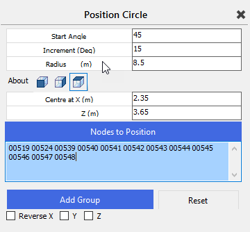 8.The ‘Reverse X, Y and/or Z’ check boxes will invert (multiply by -1) the co-ordinate of the selected nodes in the select axes.