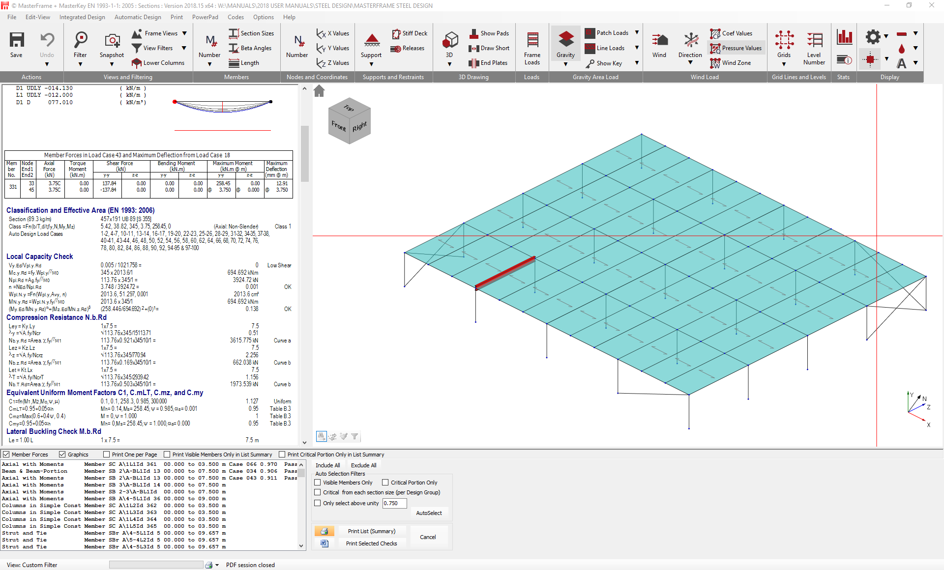 The Print Visible Member Only in Summary List will only include the members current visible in the graphics pane when printing a summary of the design outputs. The members visible can be controlled using the standard MasterFrame viewing tools and filters. For further details on the use of these tools, refer to the MasterFrame manual.