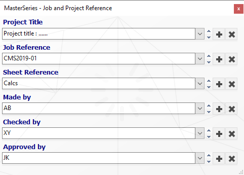 Selecting the Project Title and Job Reference option opens the following dialogue box.