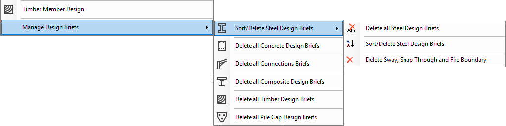 You can delete all design briefs for each material used if you need to clear them. With the steel design briefs, you can also sort the order of the briefs. In the ‘sort’ list, select a brief and drag into the new position in the list. The list should be saved after making alterations.