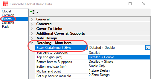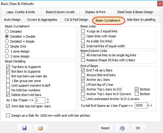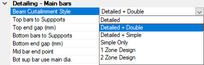 These rules are used during the Automatic Design (AutoDesign) of beams, columns and pads. The beam curtailment and detailing methods may be overridden manually after AutoDesign.