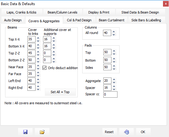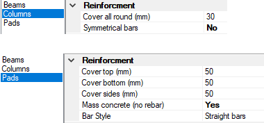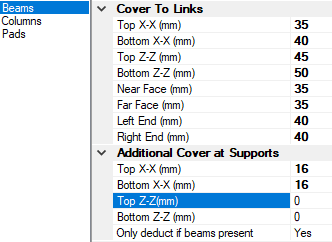 Covers to bars and links: MasterKey Concrete allows you to assign different covers to the different structural elements in a frame. Namely Beams, Columns and Pad Foundations.