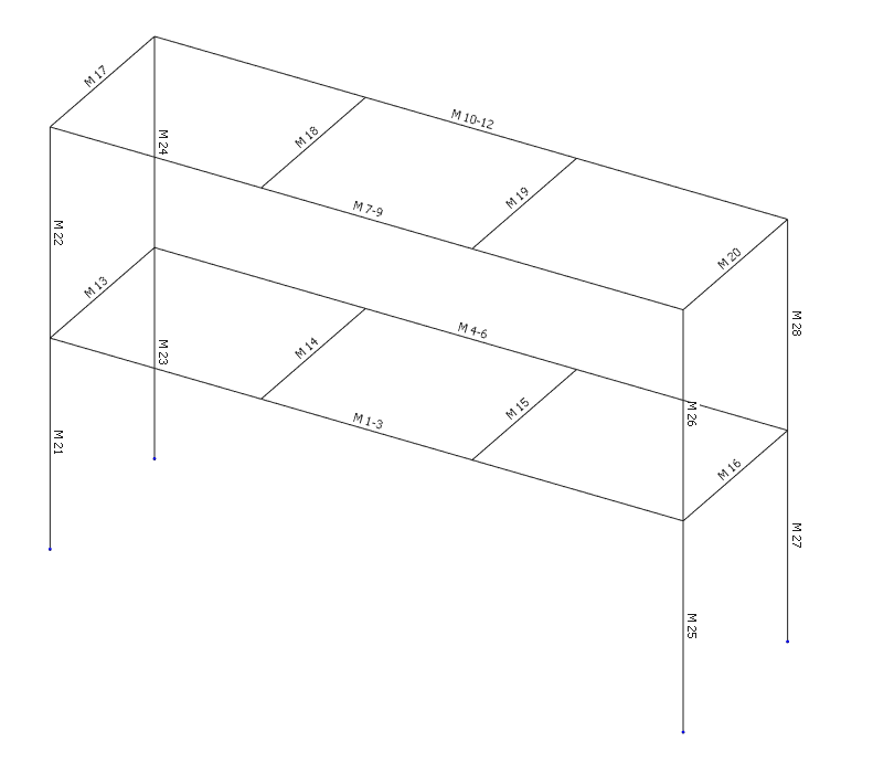 In the frame below member M1-3 is a Super-Member consisting of members 1, 2 and 3.
