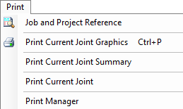The print output options are selected from the icons located at the bottom of the Joints Print Manager window. To Export the required output to Word, click on the 'Export to Word' button. To print to a printer, or to print to a pdf document, select the 'Print' button.