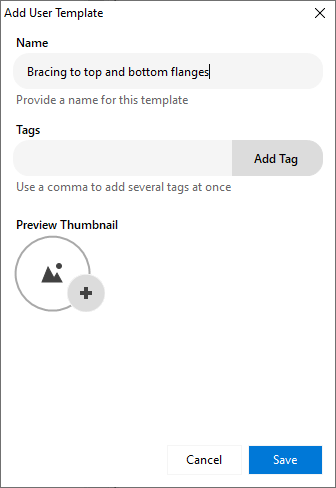 The next time you wish to add this particular connection set-up to your file, select to +Add a brief and in the Joint Template Library, go to the User section where your connection will appear under the appropriate section type. Click on the thumbnail to add it to your file.