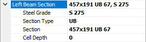 Left Beam Section - show the current selected beam size, section type and steel grade