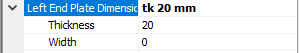 Thickness - displays the current end plate thickness. The default is 20mm. To change, select the row and input the required value