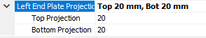 Left end plate Projection - indicates the current top and bottom projection of the end plate beyond the gusset or beam