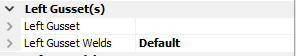 With a gusset only connection, the default layout of the Left Gusset area is as shown below.