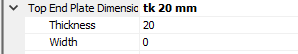 Thickness - displays the current end plate thickness. The default is 20mm. To change, select the row and input the required value