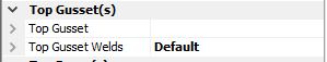 Each row controls the definition of the properties of the gusset or the welds between the gusset and the beam and column. The inputs for each set of parameters are accessed by expanding the relevant row by clicking on the arrow to the left of the row.