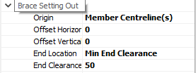 Brace Setting Out - input area to define the setting out of the brace member. The area is expanded by clicking on the arrow to the left of the row