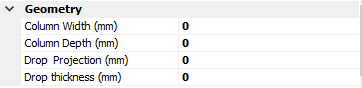 The Geometry area provides inputs to define the column size and to include for an additional drop in the slab to assist with the punching shear capacity. The layout of the Geometry area is shown below.