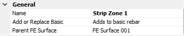 The General input allows controls the basic design parameters of a strip zone as well as providing controls over the extend of the strip. The General Region also provides controls over the arrangement of the reinforcement including the position and orientation of the reinforcement within the strip.