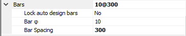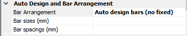 Auto design bars (no fixed) - reinforcement design will be done by the software. Reinforcement size and spacings will be based on Defaults setup but can be refined by Bar sizes and Bar Spacings inputs