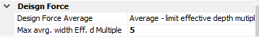 The Design Force provides controls to define how the forces in the selected peak region are averaged for the purposes of the reinforcement design. The required option is selected from the Design Force drop down by selecting the row and then using the drop down to select the required option. The default selection is to average over the full width. The default layout is shown below.