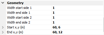 The position and extent of the strip can be modified by redrawing, or by using the grips on the boundary and amending the position graphically. However, for small values of change, modifying the start and finish coordinates can allow for a more refined level of control over the positioning of the strip. Each of the Start and Finish input rows can be expanded by clicking on the arrow to the left of the row. The expanded Start x.y (m) row is shown below.