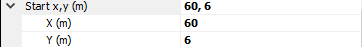 The x and y coordinates can be manually entered to modify the start coordinates. The End x,y(m) inputs are the same format.