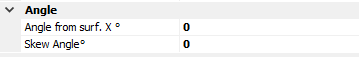 The angle inputs allow the orientation of the selected basic region reinforcement to be be defined relative to the FE surface local x-axis. The orientation of the Direction 2 reinforcement can also be specified where the reinforcement bars are skewed relative to the direction 1 bars. The direction 2 bars can be skewed up to an angle of +/- 45 degrees.