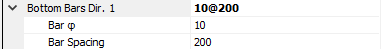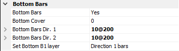 To change the bottom reinforcement, both the rows can be expanded. The expanded Dir 1 area is shown below.