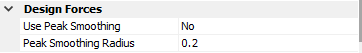 The design forces area provides inputs to control the design forces used in the design of the selected basic rebar region. With peak smoothing on, the software will use the shape of the contours to identify peak regions and apply peak smoothing over the specified peak smoothing radius.