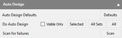 Auto design can be turned on or off for each basic region. This is selected by highlighting the Auto Design row and selecting the required option from the drop down.