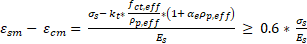 The difference in the strains in the concrete and steel is calculated from the expression