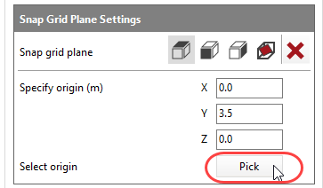 The origin of the snap grid can be selected or moved using the ‘Pick’ option.