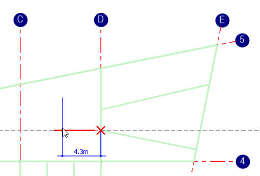 However, in certain circumstances we may wish to have tracking lines to generate the first end of a member. As we can see we automatically get tracking lines along existing structure. However, tracking points and lines can also be provided at any point by simply hovering over a location (red X) to provide a temporary tracking point or line about which to select a new snap point.