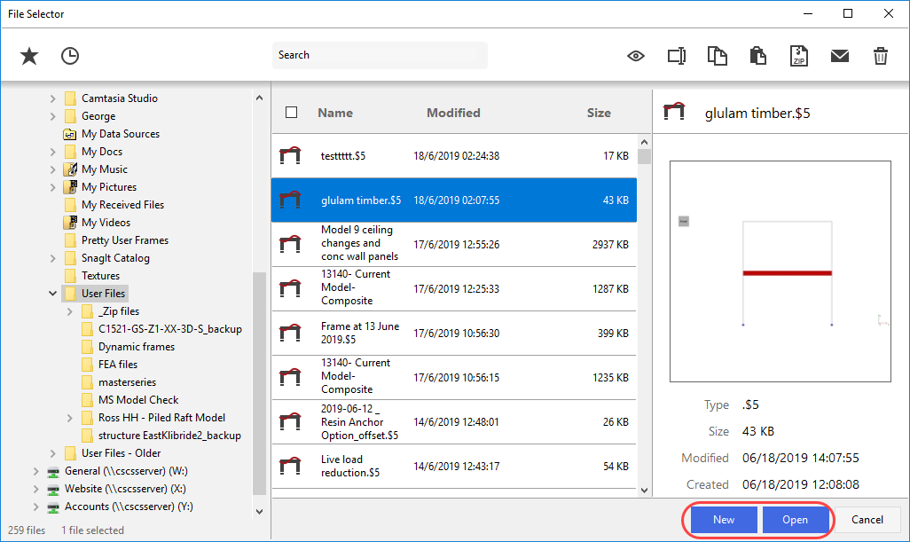 This opens up the file selection menu where you can pick a directory for the new file or select an existing file which you may be working on.