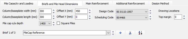 Additionally, there are functions within the Briefs and Pile Head Dimensions for adding design briefs as well as selecting the design brief to view.
