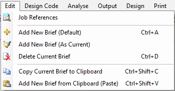 Edit the job references for the project. Add a new brief based on the default setup or alternatively the current brief. Delete the current brief. Copy the current brief to the clipboard and paste it in again as a new brief.