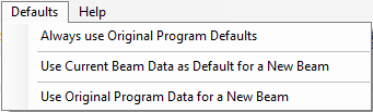 The current beam can be set as the default for a new beam if desired. Alternatively, the original program data can be used for a new beam.