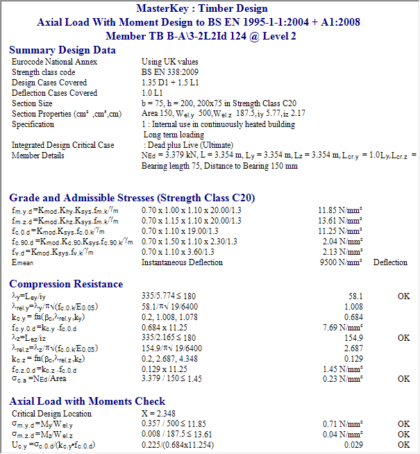 The timber design results are displayed directly on the screen in a scrolling window. The results update immediately with each change in input data.