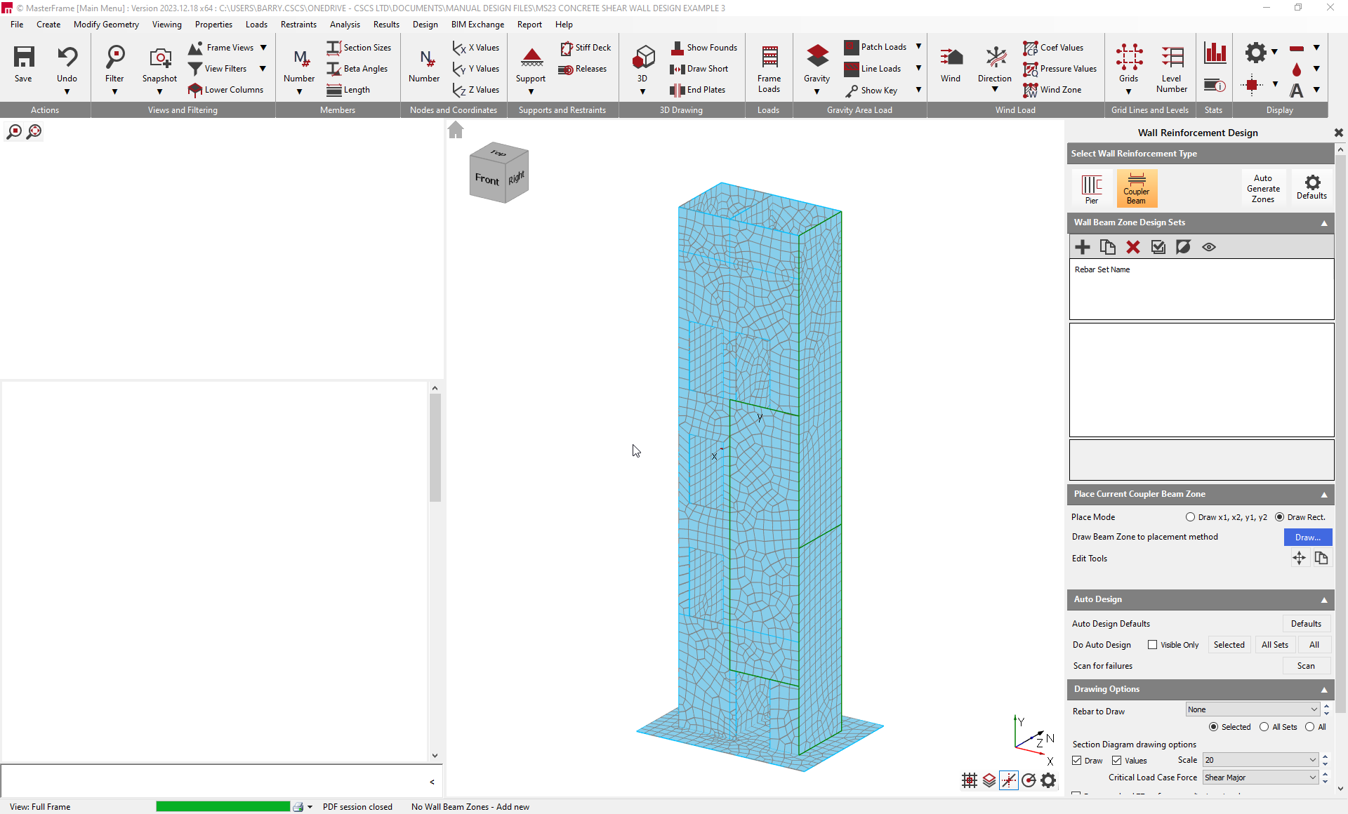 The Coupler Beam area provides options for the creation of the required coupler beam zones within the walls, along with options to define and control the various design options.