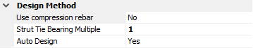The Design Method area provides inputs to control the design of the coupler beam. Some parameters apply to cases where the wall beam is designed ausing beam theory, while other options apply to the strut and tie design.