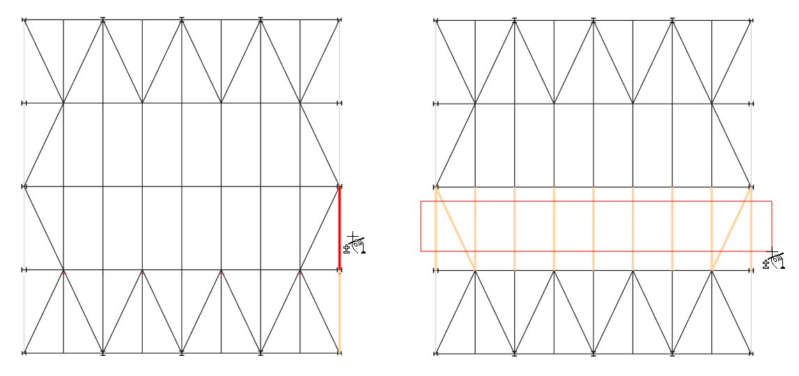 Window select - Window multiple members ends to add/remove from selection. Member ends are selected in window mode when the member end within a small tolerance (approx. 15 pixels) is included in the selection window.