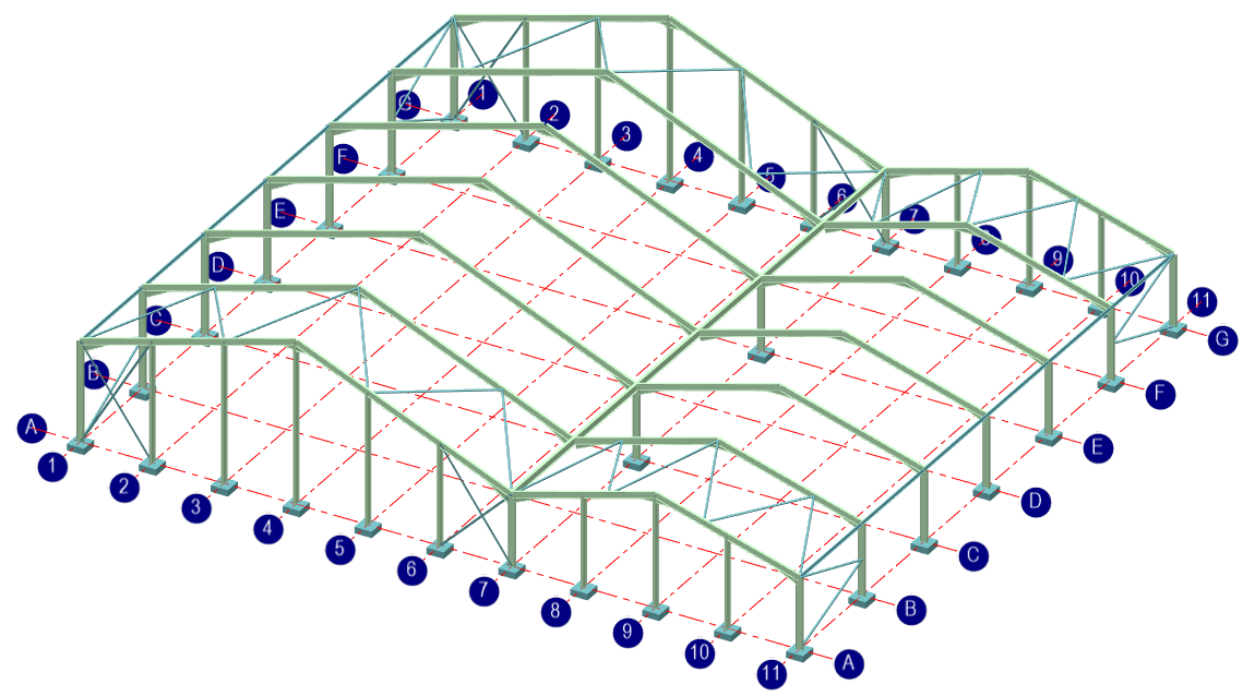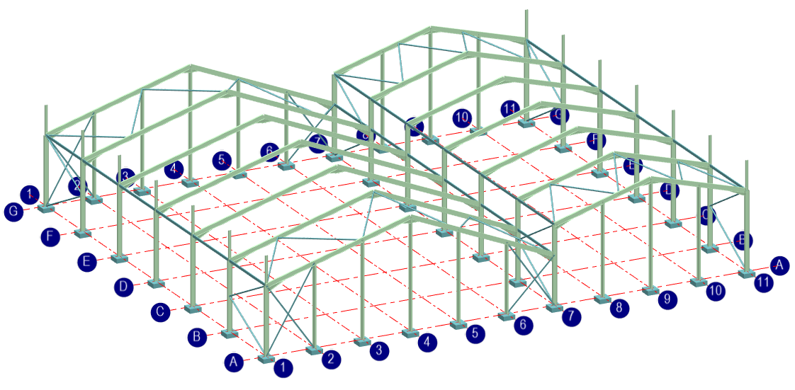 Tip:- If a step in the frame height is required at a particular column, then the height to the lower rafter should be entered plus the additional height to the higher rafter, for example 5 + 3, which would give an overall height of 8 metres to the higher rafter, with the lower rafter coming in at the 5 metre level.