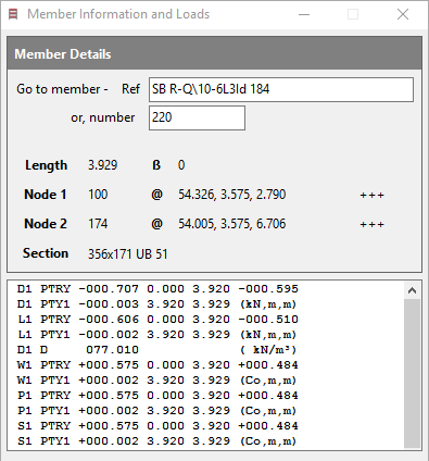 The Frame Statistics table gives a considerable amount of information on the quantities of materials within the frame. Principally the section sizes are listed along with their lengths, weights and surface areas with the totals at the bottom of the table.