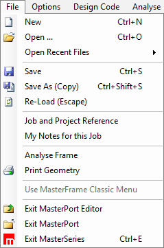The MasterPort Editor menu is a short menu with only a few items as most of the editing can be carried out using the tabs at the bottom of screen in the Simplified Interface.