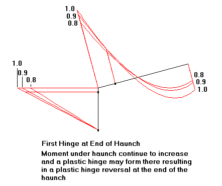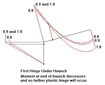 Once more, if a collapse mechanism is not reached, then it is important to note that increasing the design loads will result in reducing the negative moments over the haunch and increasing the positive moments near the ridge.