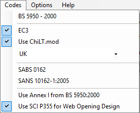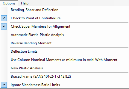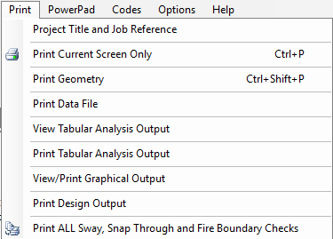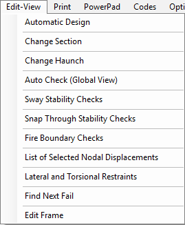The main menus at the top of the screen will aid with the design of the steel sections and other additional checks, viewing and printing of the output, selection of design codes and some additional options as outlined below.