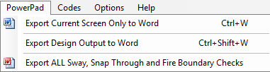 Export the sway, snap through and fire boundary checks to Word. |